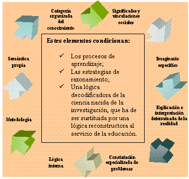 No se trata de crear una disciplina para el currículum de la escuela y si de aportar a esta disciplina presupuestos teóricos construidos en su propia epistemología. En palabras de Gonzáles Gallego (2002) el papel propio, específico y diferenciado como campo de conocimiento de las didácticas específicas, resulta evidente porque:los contenidos y los procesos psicolingüísticos propios de un área de conocimiento desarrollan itinerarios mentales, prioridades y preferencias en la manera de considerar e interpretar la realidad, que influyen…en las decisiones y en las actitudes en el aula (Benejam Arguimbau, en: Gonzáles Gallego, 2002, p. 15).