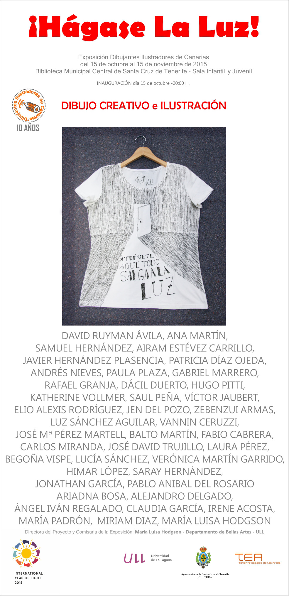 La "Exposición 2015 Dibujantes Ilustradores", que bajo el título ¡Hágase La Luz!, será inaugurada el próximo jueves día 15 a las 20:00 h. en la Biblioteca de Santa Cruz (Edif. TEA) en la segunda planta.