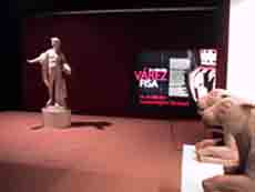 3.- Rótulos y multimedia con efectos atractivos, modernos y de diseño, quizás haya que estirarse un poco para leer los carteles de las vitrinas. No caiga en la tentación de ponerles un ángulo de 90º. La gente va a la exposición para disfrutar, estirarse, retorcerse y cumplir con una gymkhana que le imprime carácter. Pantallas táctiles, ordenadores por doquier, que haga cola para entrar, ver, tocar virtualmente o si se va la línea, no se le ocurra decir que no estaba previsto, basta con echar la culpa a la nueva tecnología, que aún no está muy desarrollada... Ni por un momento tenga la tentación de hacer espacios de descanso y desbloqueo, un área de cafetería o un lugar para charlar sobre lo visto, un libro de comentarios o una encuesta y un seguimiento de personas para ver como se desarrolla la visita, los tiempos y sacar conclusiones, por si hay una nueva exposición o una itinerancia.